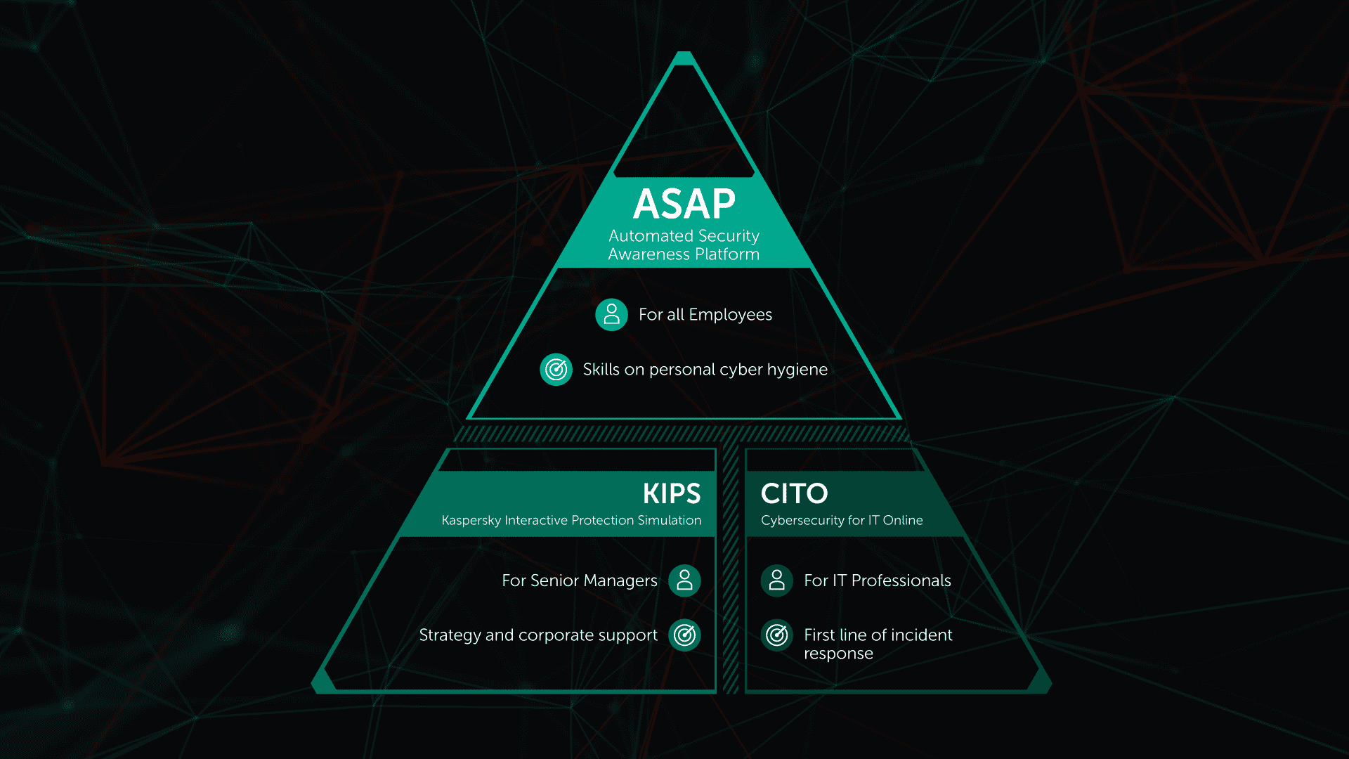 Kaspersky Security Awareness biedt een organisatiebrede, visuele leermethode op basis van games, waarmee ondernemingen een robuuste, zelfstandige cyberomgeving kunnen ontwikkelen. Dit is het enige succesvolle wapen tegen de belangrijkste cyberrisico’s van vandaag: menselijke fouten.